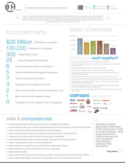 •Broad business acumen gained working in private sector management consulting, Public-Private-Partnership (PPP) organizations, and in non-governmental and non-profit organizations